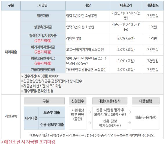 - 대출한도 : 대리대출 총 융자잔액 기준으로 업체당 최고 7천만 원 이내